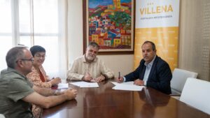 El alcalde de Villena, Fulgencio Cerdán, y el presidente de la Cámara de Comercio de Alicante, Carlos Baño, han firmado hoy un nuevo convenio de colaboración para dinamizar y mejorar la gestión del Vivero de Empresas de Villena, consolidando este espacio como epicentro del emprendimiento y la innovación en la comarca del Alto Vinalopó. El Vivero de Empresas, que cumple 20 años desde su puesta en marcha, se ha convertido en un centro de impulso de iniciativas empresariales, una efeméride que ha motivado a ambas instituciones a renovar su compromiso con el desarrollo económico local, apostando por nuevos servicios, formación especializada y eventos de alto impacto.
