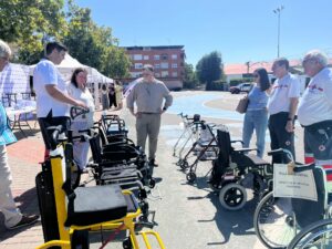 Villena, 17 de septiembre.-  El alcalde de Villena, Fulgencio Cerdán, y la edil de Sanidad, Alba Laserna, acompañados por el edil de Hacienda, Juan José Olivares, han visitado hoy el Recinto Ferial donde se está celebrando la Jornada del 50 Aniversario de Cruz Roja Villena con la organización de talleres de diferentes temáticas.  La delegación municipal ha podido conversar con algunos miembros de Cruz Roja y sus voluntarios, encargados de todo el evento. Esta actividad es previa a la gala oficial del aniversario que Cruz Roja Villena tiene previsto celebrar este próximo viernes en el Teatro Chapí.