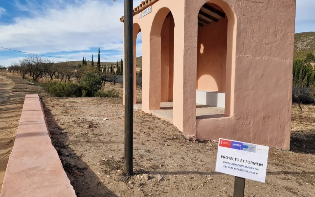 Villena, 15 de diciembre.-  El alumnado del Taller de Empleo ‘Et Formen’, financiado con fondos europeos a través de Labora, ha completado la rehabilitación del antiguo apeadero del tren del Chicharra en Las Virtudes y ha mejorado la vegetación del vial ecológico que pasa por viejo trazado de vías de esta línea férrea que conectaba con Yecla. Las tareas de reparación han logrado recuperar la fisonomía de la estructura del apeadero por parte del alumnado de la especialidad de Auxiliar de Albañilería de Fábricas y Cubiertas, y se ha realizado las tareas de limpieza y desbroce de la vía que han realizado los miembros del curso de Auxiliares, Jardines y Centros de Jardinería, quienes han acometido la poda del arbolado y la plantación de nuevas especies.
