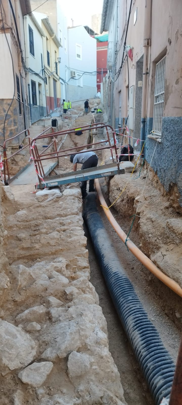 Villena, 28 de octubre.- El alcalde de Villena, Fulgencio Cerdán, y la edil de Cultura, María Server, han anunciado su interés de catalogar como Bien de Interés Cultural (BIC) el tramo de muralla hallado en el Casco Histórico durante las obras de reurbanización del barrio. La delegación municipal, acompañada por la responsable del Servicio Municipal de Arqueología y Patrimonio (SEMAP), Luz Pérez, y los técnicos de Patrimonio Arqueológico de la Conselleria de Cultura, han realizado una visita a la calle José Zapater, donde se encuentra este tramo de muralla y donde se están realizando las tareas necesarias para su preservación.