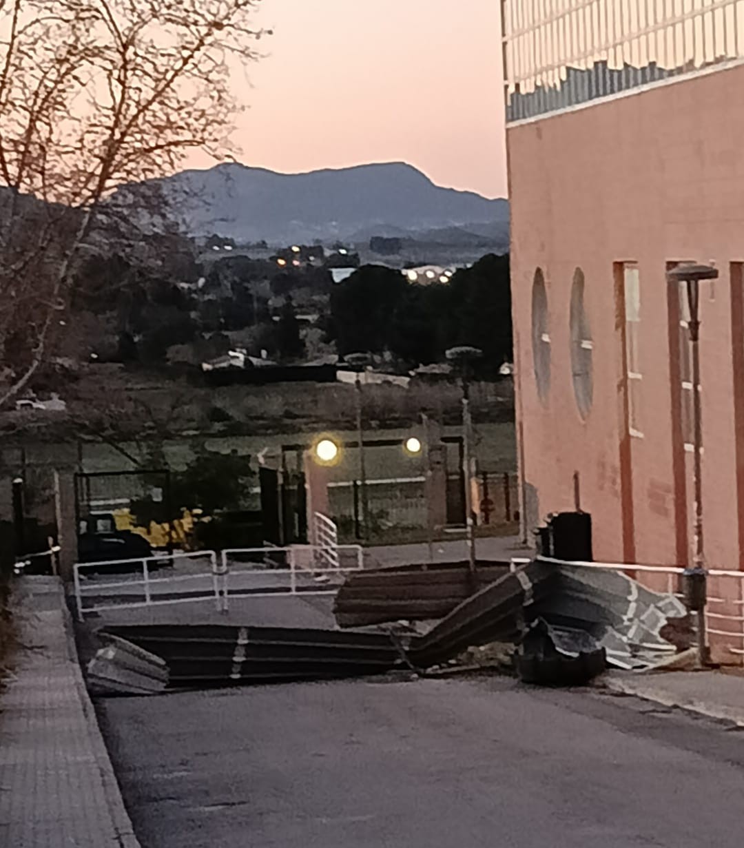 Villena, 12 de febrero.- El Ayuntamiento de Villena ha decretado el cierre de las instalaciones deportivas municipales después de las fuertes rachas de viento de esta madrugada que han vuelto a golpear sobre la cubierta del pabellón deportivo, causando nuevos daños. La medida de cierre se establece por seguridad de los usuarios y queda en vigor hasta que se pueda realizar la inspección de los daños causados por las rachas de viento superiores a los 90 kilómetros por hora registrados durante esta madrugada, según ha explicado la edil de Deporte, Maite Gandía.