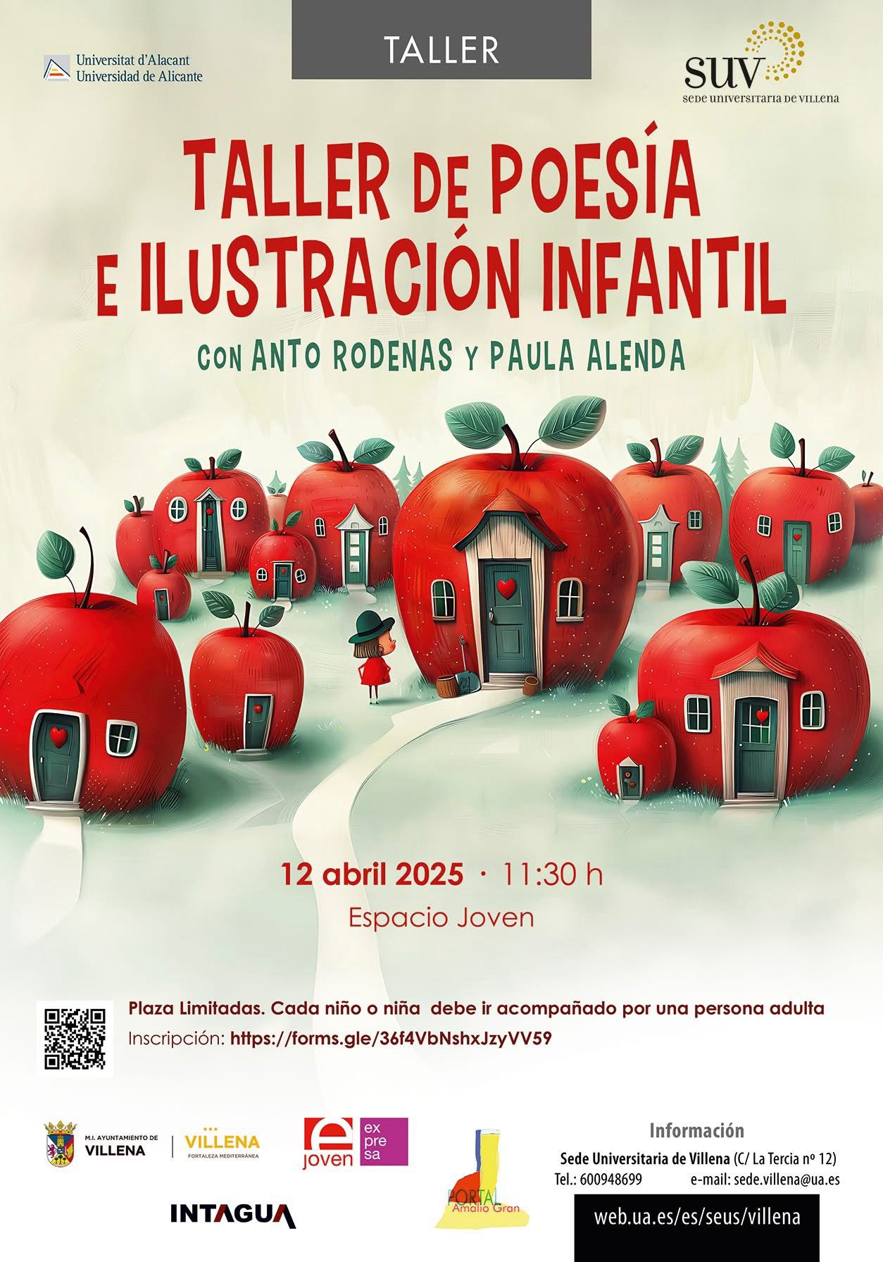 Por otra parte, el 12 de abril tendrá lugar el Taller de Poesía e Ilustración Infantil, que impartirán Anto Rodenas y Paula Alenda.  La directora de la Sede ha comentado que esta actividad está diseñada para las familias con menores de hasta 12 años, donde se configura de manera participativa con un claro objetivo de fomentar la imaginación y la creatividad.