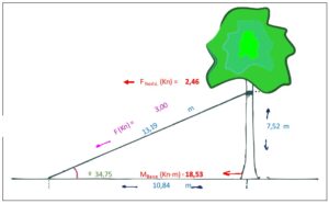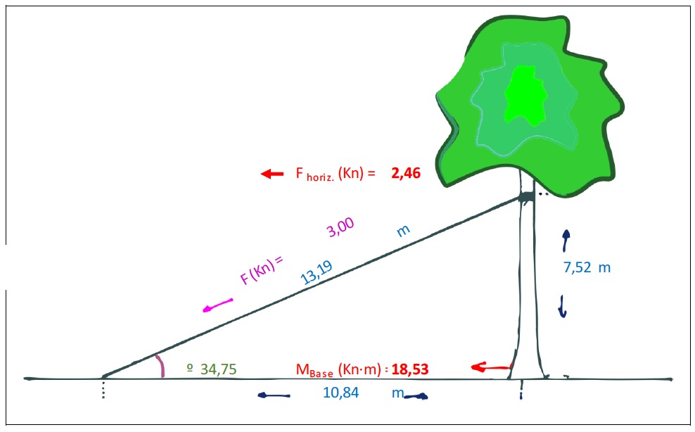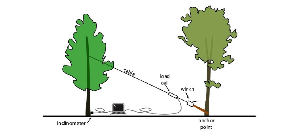 Las pruebas se acometieron con un test de tracción que consiste en una simulación de resistencia al viento mediante una prueba de esfuerzo donde se mide la fuerza aplicada como la inclinación que registra la base de cada árbol. Esta prueba se llevó a cabo con un inclinómetro y un elastómetro. Todos los datos de los sensores eran registrados en tiempo real a través de un equipo que tiene incorporados testigos luminosos de color, de manera que en caso de acercarse a los límites de seguridad durante la realización de la prueba se podría detener sin generar daño al árbol.