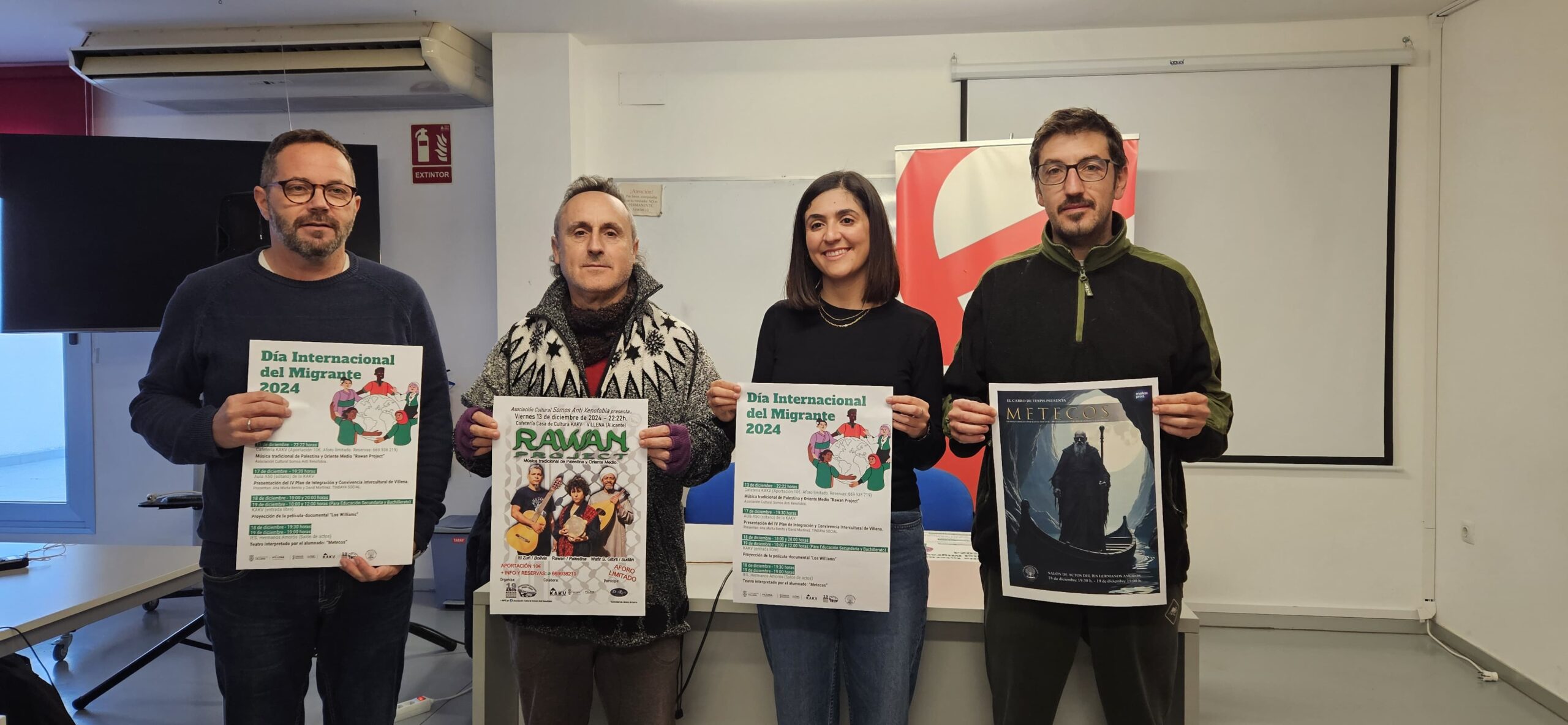 La edil, acompañada por representantes de Red Pangea, la Asociación Cultural Somos Anti Xenofóbia y el IES Hermanos Amorós, han anunciado una serie de actividades que darán comienzo el próximo viernes, 13 de diciembre, a las 22:22 horas, con el concierto de música tradicional de Palestina y Oriente Medio ‘Rawan Project’ en la cafetería del KAKV. Esta apuesta musical pretende visibilizar la oferta artística de otras etnias y culturas. El aforo es limitado y requiere una aportación de 10 euros. Quienes deseen asistir podrán hacerlo reservando su entrada en el 669938219.