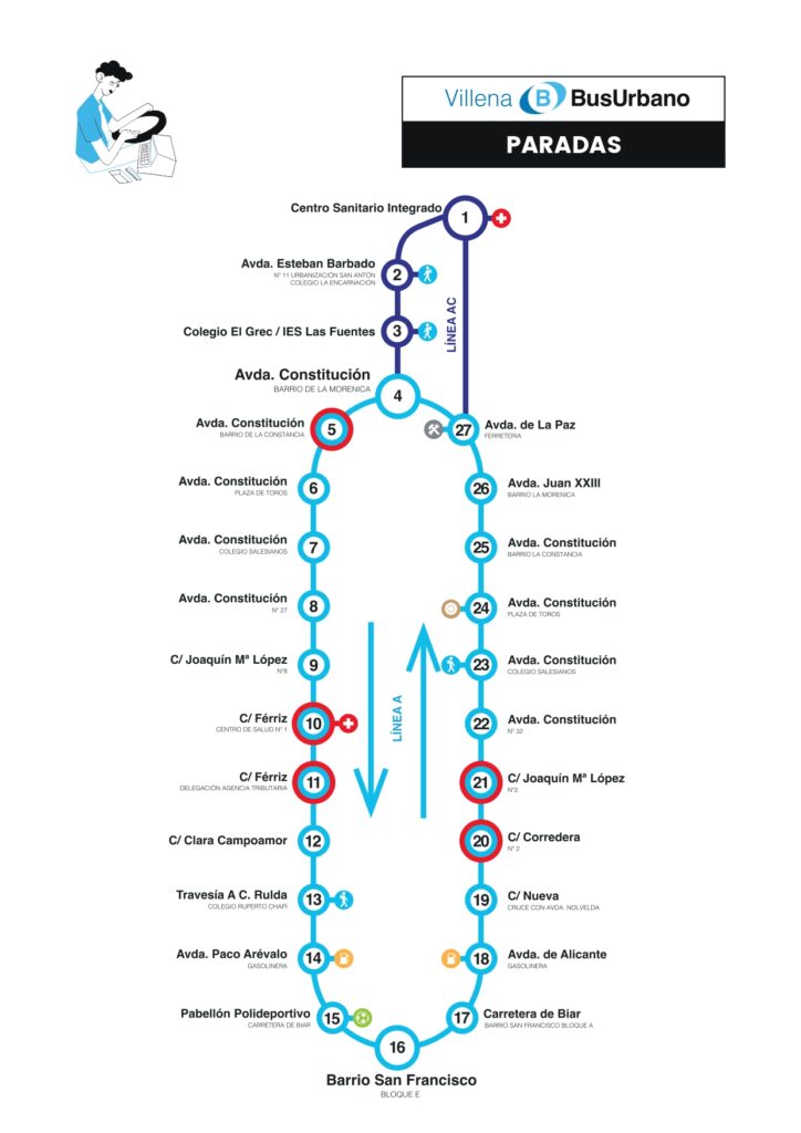 La Semana de la Movilidad arranca en Villena fomentando el uso del transporte público a través del servicio de bus urbano, que cuenta con tres líneas activas que unen el conjunto de la ciudad: la Línea A, que conecta el barrio La Morenica con el barrio San Francisco; Línea AC, que une el Centro Sanitario Integrado, el Barrio La Morenica y el Barrio de San Francisco; y la Línea B, que recorre la calle Ferriz. En total, el servicio dispone de 27 paradas y un amplio horario de lunes a sábado, desde las 7:00 horas hasta pasadas las 21:00 horas.